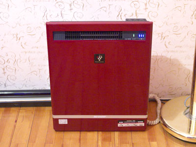 売り場でいろいろ眺めておりましても、いったいどれが効果あるのかとんと分からない。まぁ、そこそこ高価なものであれば性能もいいだろうという単純な発想で、ちょっと大きめの機種を物色しておりました。そして決めたのが、SHARPの「プラズマクラスター」という方式の空気清浄機。いや、このプラズマナントカにどれほどの効果があるかは分かりませんが、決め手となったのは、VIPルームに置いてあるSHARP製のテレビと同じ色だったということ。ただ、それだけでございます。ね、色がそろっているって、なんだかカッコイイじゃん。